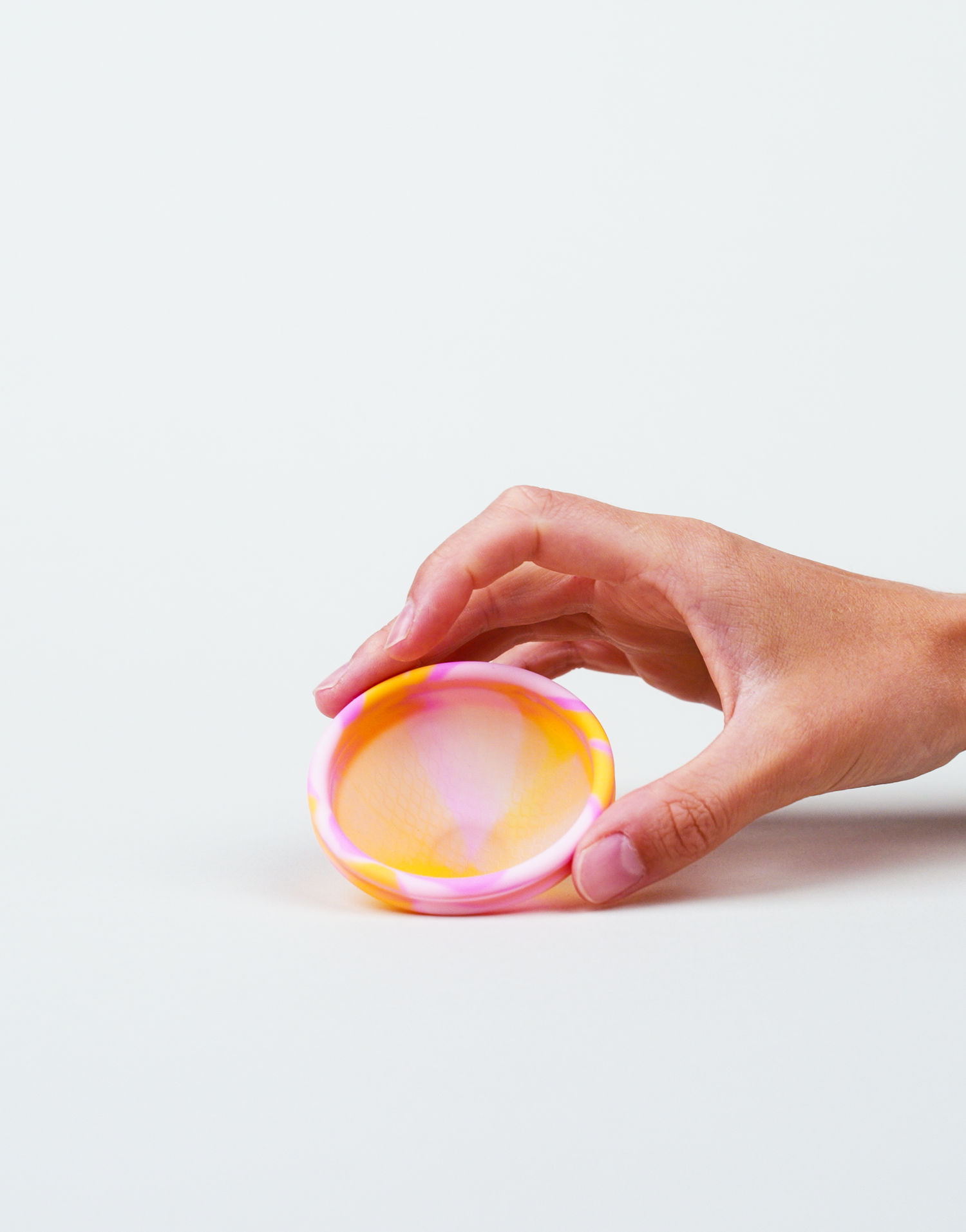 Im Gegensatz zu einem Cup funktioniert die Menstruationsdisk ohne Unterdruck. Dies macht das Tragen und Entleeren einfacher. Zudem kann es Periodenschmerzen verringern.